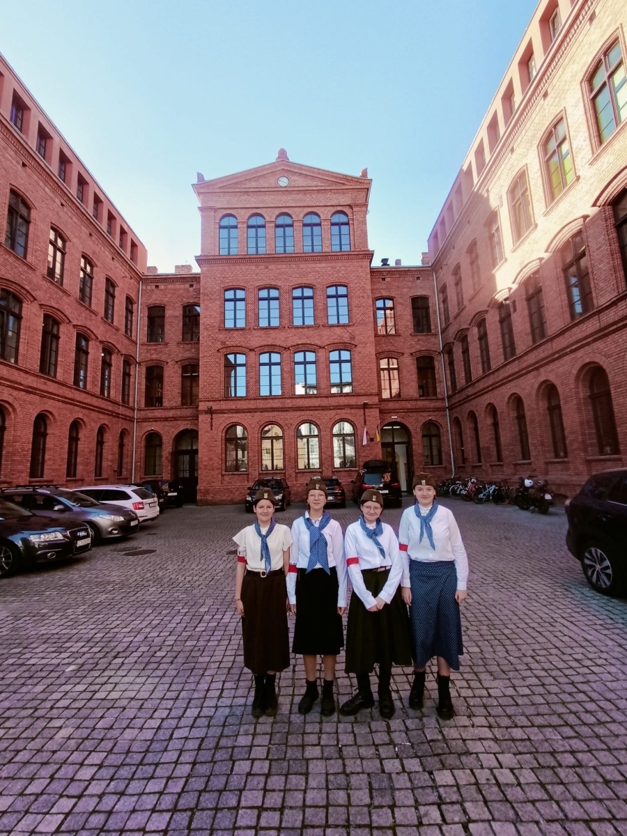 Co warto zaznaczyć, w warcie honorowej stanęły nasze nowe wolontariuszki ze Szkoły Podstawowej nr 1 im. Uczestników Strajku Szkolnego 1906-1907 w Toruniu. Jest to budynek z ciekawą historią, którą również zgłębia nasze Muzeum. Po 1920 roku mieściło się w nim Miejskie Gimnazjum i Liceum Klasyczno-Humanistyczne Żeńskie, które ukończyła między innymi gen. prof. Elżbieta Zawacka. Nasze wolontariuszki będą miały szansę aktywnie uczestniczyć w odkrywaniu losów swojej szkoły.