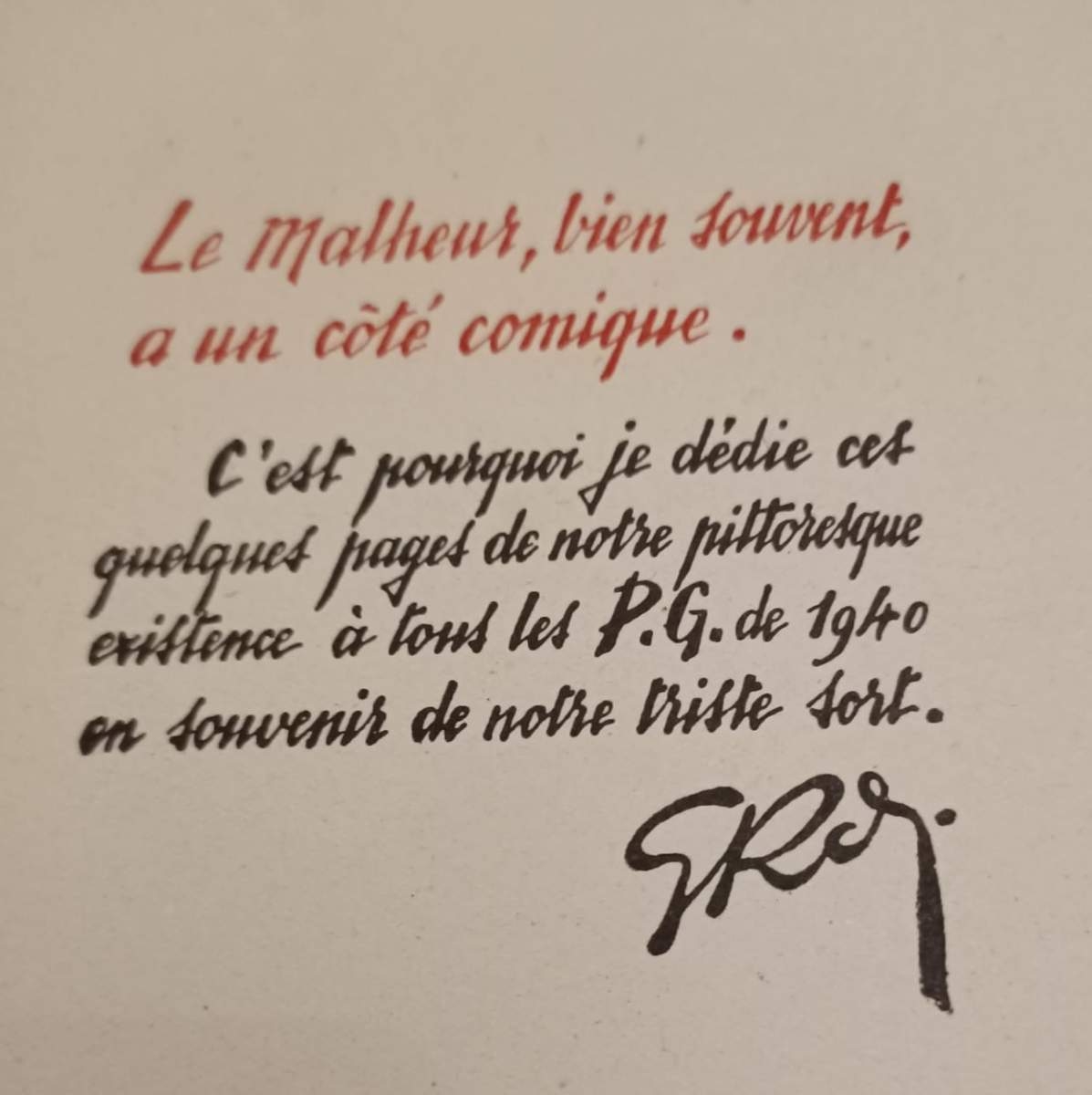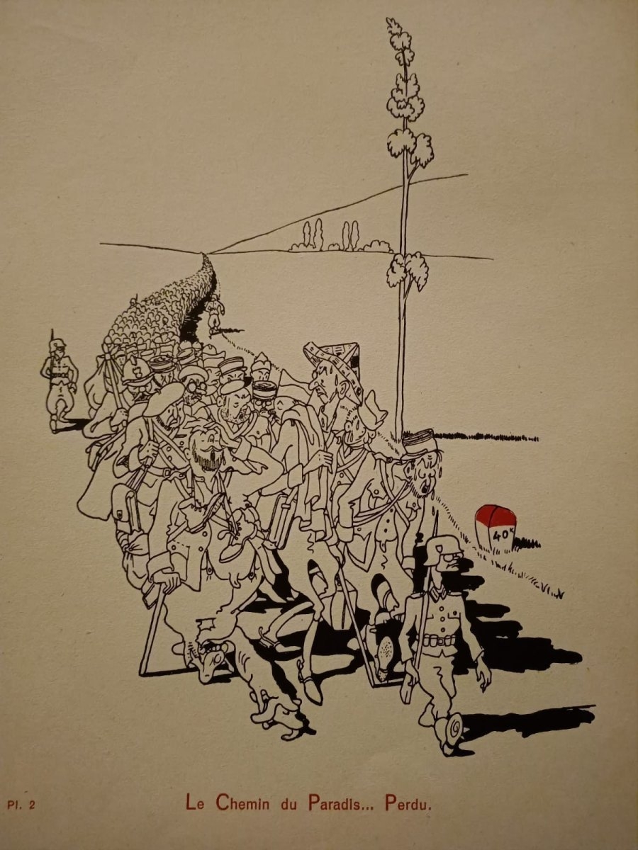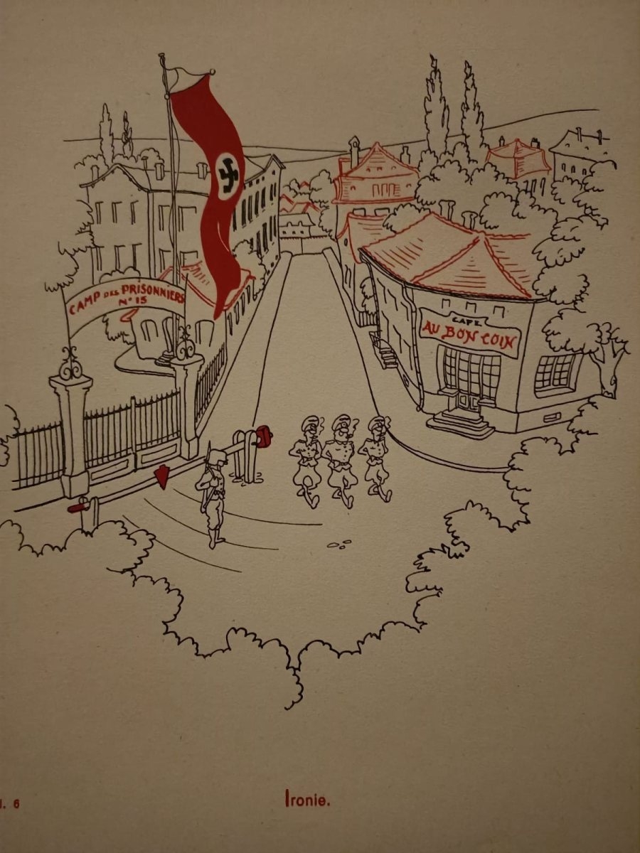 Książka została podzielona na trzy części. Pierwsza przedstawia wyczerpujący marsz jeńców do Frontstalagu. Kolejne rysunki ukazują życie jenieckie najpierw we francuskim obozie Sarrebourg, a następnie w niemieckim Oflagu III C Lübben. Motywami przewodnimi są głód, nuda, spartańskie warunki życia, czasami mierny wypoczynek oraz problemy z higieną. Każda tablica pokazuje, że humor sam w sobie stanowił akt oporu – jak sugerował generał Juin w przedmowie: