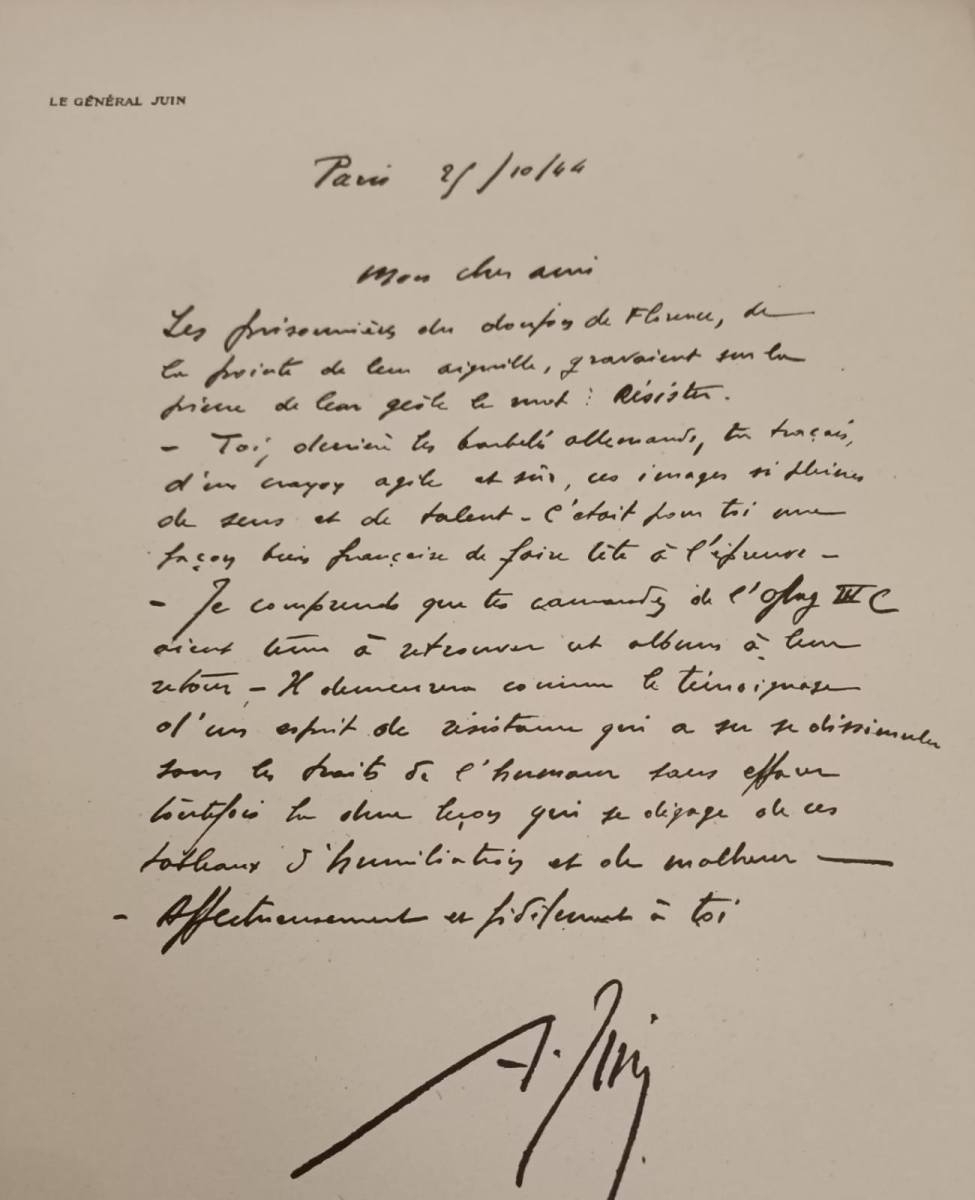 Generał Alphonse Juin (1888–1967) był wybitnym francuskim dowódcą wojskowym i jedynym generałem II wojny światowej, który otrzymał godność Marszałka Francji za życia. Urodził się w Algierii i ukończył prestiżową akademię Saint-Cyr w tym samym roczniku co słynny Charles de Gaulle (warto dodać, że Juin był prawdziwym prymusem). Podczas I wojny światowej w wyniku odniesionych ran stracił władzę w prawej ręce.