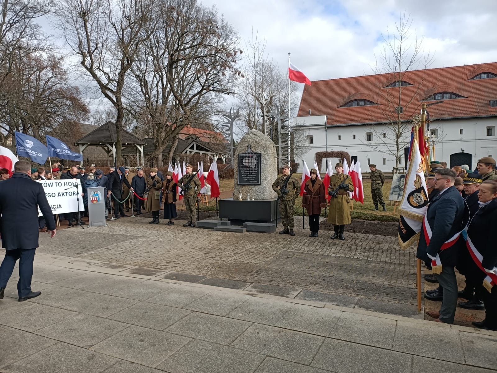Zachęcamy do zapoznania się z fotorelacją z toruńskich obchodów Narodowego Dnia Pamięci „Żołnierzy Wyklętych”, w których braliśmy udział. W tym roku nasze Muzeum przygotowało oprawę graficzną tej uroczystości w postaci obrazów wielkoformatowych przedstawiających następująco: gen. Augusta Fieldorfa ps. „Nil”, mjr Zygmunta Szendzielarza ps. „Łupaszka”, rotmistrza Witolda Pileckiego i Danutę Siedzikówną ps. „Inka”. Poza tym, zaprezentowaliśmy wystawę zdjęć Żołnierzy Niezłomnych z naszego regionu. Wartę honorową zaciągnęli wolontariusze MHW w historycznych mundurach. Wydarzenie miało miejsce przed pomnikiem Żołnierzy Wyklętych w Toruniu.