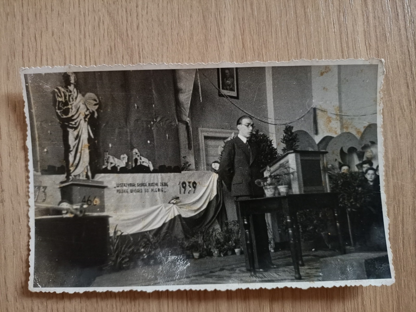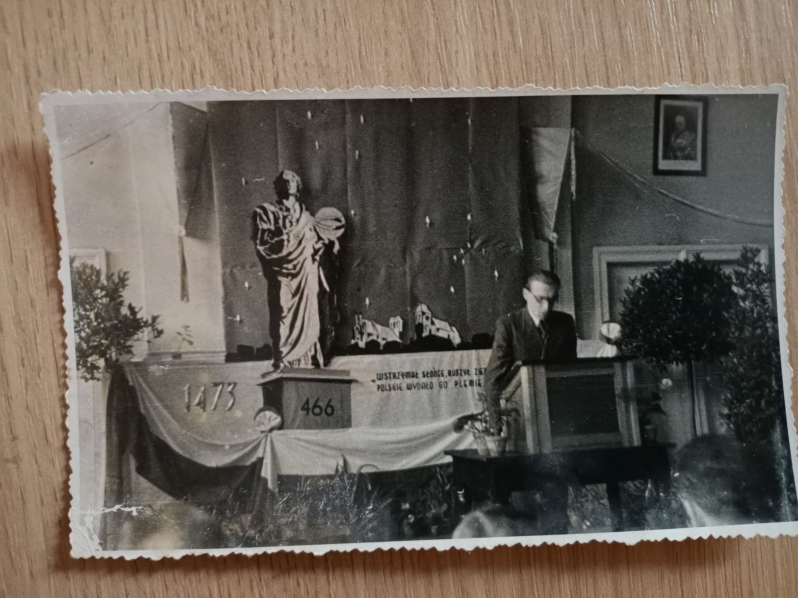 W centralnym miejscu prezentowany był słynny portret M. Kopernika, tak zwany „gimnazjalny” z pierwszej połowy XVI wieku. Od około 1594 roku do początków XX wieku obraz ten znajdował się w Bibliotece Gimnazjum Akademickiego w Toruniu. Od 1920 roku do 1939 r. był przechowywany w Państwowym Gimnazjum Męskim im. M. Kopernika. Niemcy, po zajęciu Torunia we wrześniu 1939 r. przenieśli go do Muzeum Miejskiego. Na przełomie 1944 i 1945 roku okupanci starali się wywieźć obraz wgłąb Niemiec. W 1945 roku odnaleziono go na składnicy w Wyrzysku. Władze I Liceum Ogólnokształcącego przekazały wtedy portret w depozyt do Muzeum Miejskiego. Po dziś dzień podziwiać go można w Sali Mieszczańskiej Muzeum Okręgowego w Toruniu…
