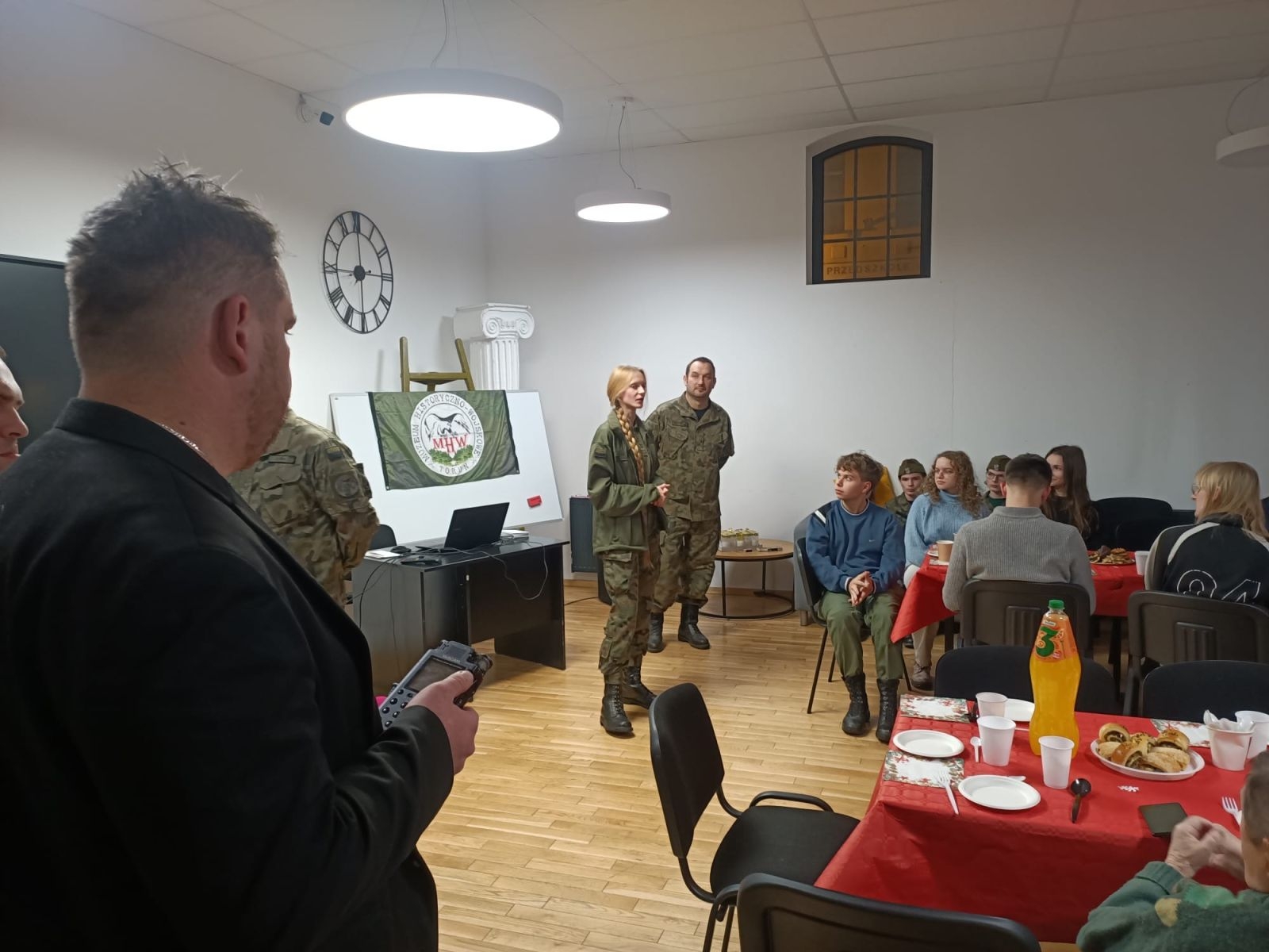 W pierwszej kolejności powitaliśmy przybyłych gości – rodziny weteranów, osoby związane z historią I Liceum Ogólnokształcącego, Przyjaciół MHW z regionu oraz wolontariuszy. Uczciliśmy także minutą ciszy naszych działaczy, którzy w tym roku odeszli na wieczną wartę: Stefanię Tatarzycką, Witolda Bogotko oraz Andrzeja Czastera.
