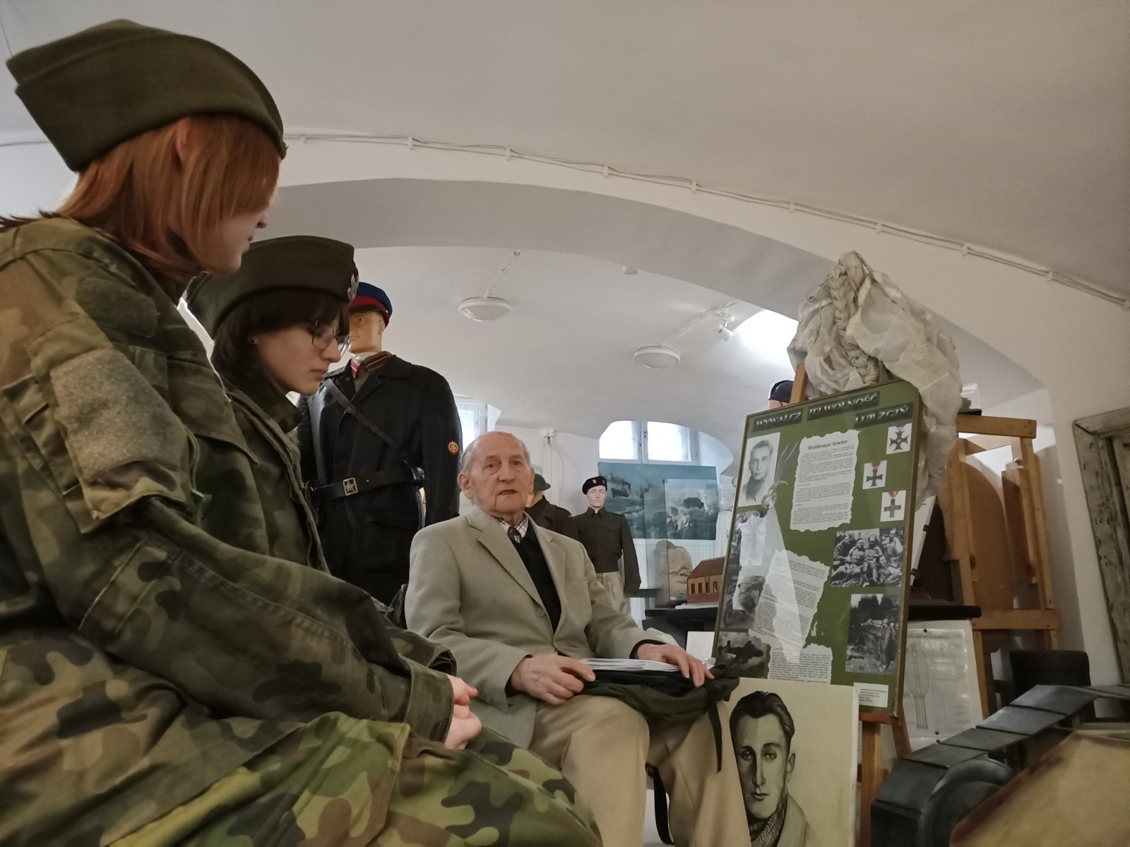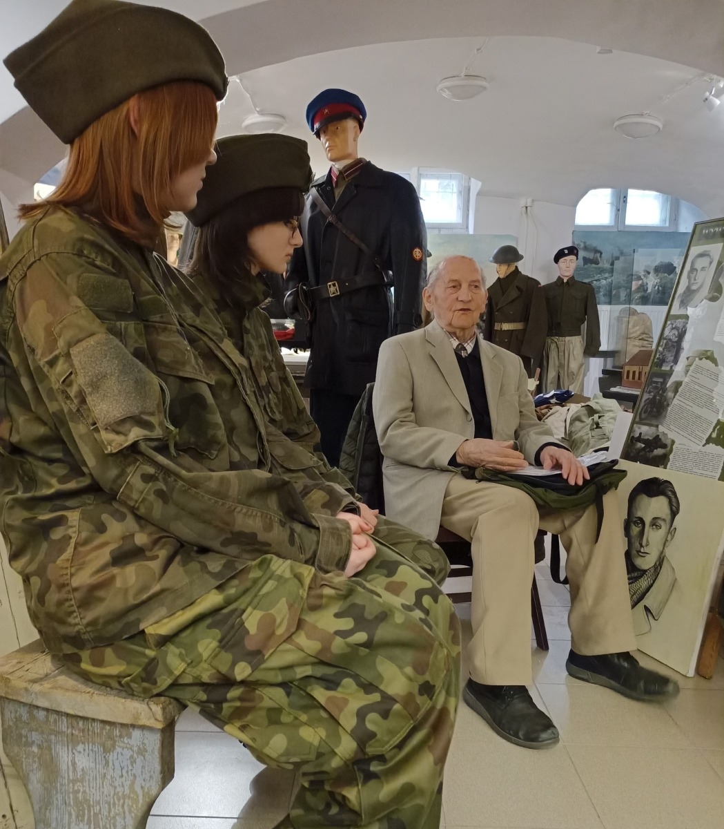 Podczas czwartkowych zajęć MHW w dniu 12 marca 2026 r. młodzi wolontariusze spotkali się po raz pierwszy z żywą historią, wręcz „na dotyk”. Tematem wiodącym była Syberia, a dokładniej mówiąc losy Polaków zesłanych tam na katorgę. Wszyscy w wielkim skupieniu wysłuchali wspomnień „Sybiraka” – Jerzego Maciejewskiego. Choć był wtedy małym dzieckiem, w pamięci jego utkwiło wiele sytuacji. Pan Jerzy przytaczał także opowieści swojej starszej siostry – Krystyny Buniak, którą pożegnaliśmy na cmentarzu w lipcu ubiegłego roku. Była ona wspaniałą polonistką w I Liceum Ogólnokształcącym im. M. Kopernika w Toruniu i Przyjacielem Muzeum Historyczno-Wojskowego.