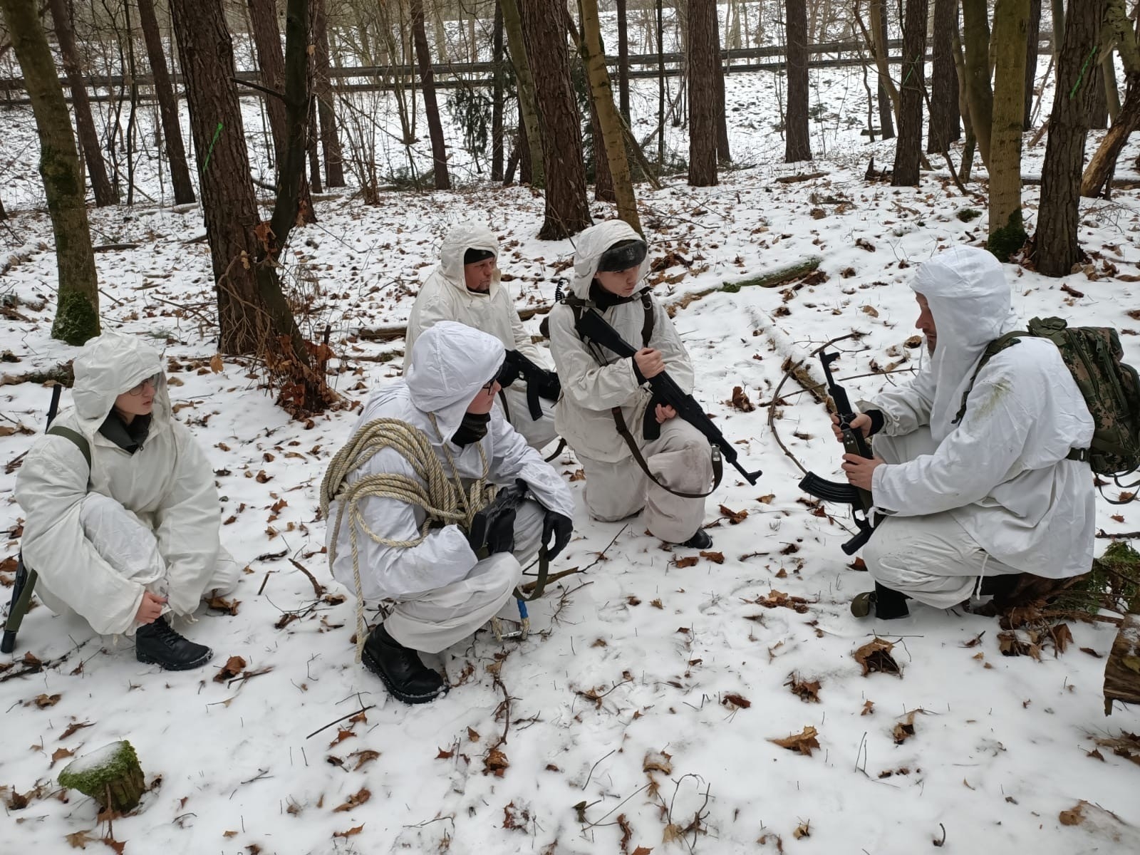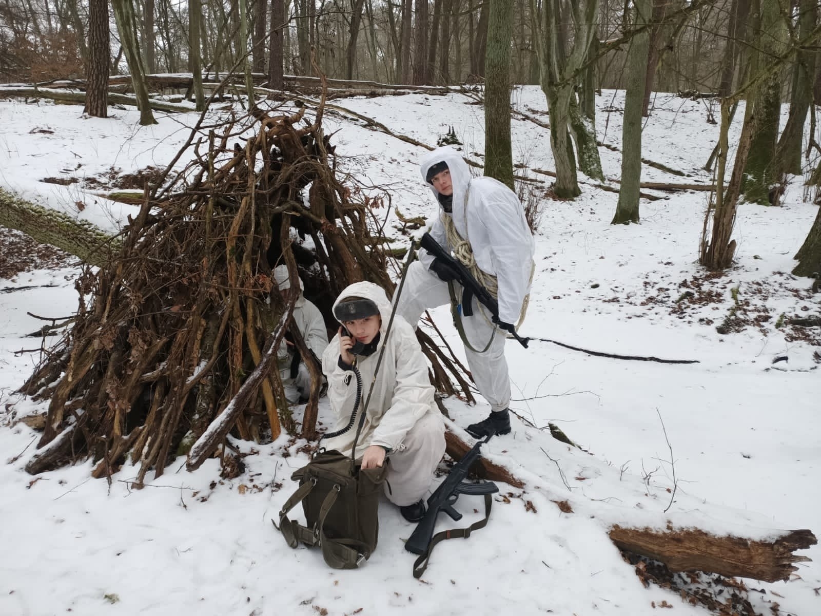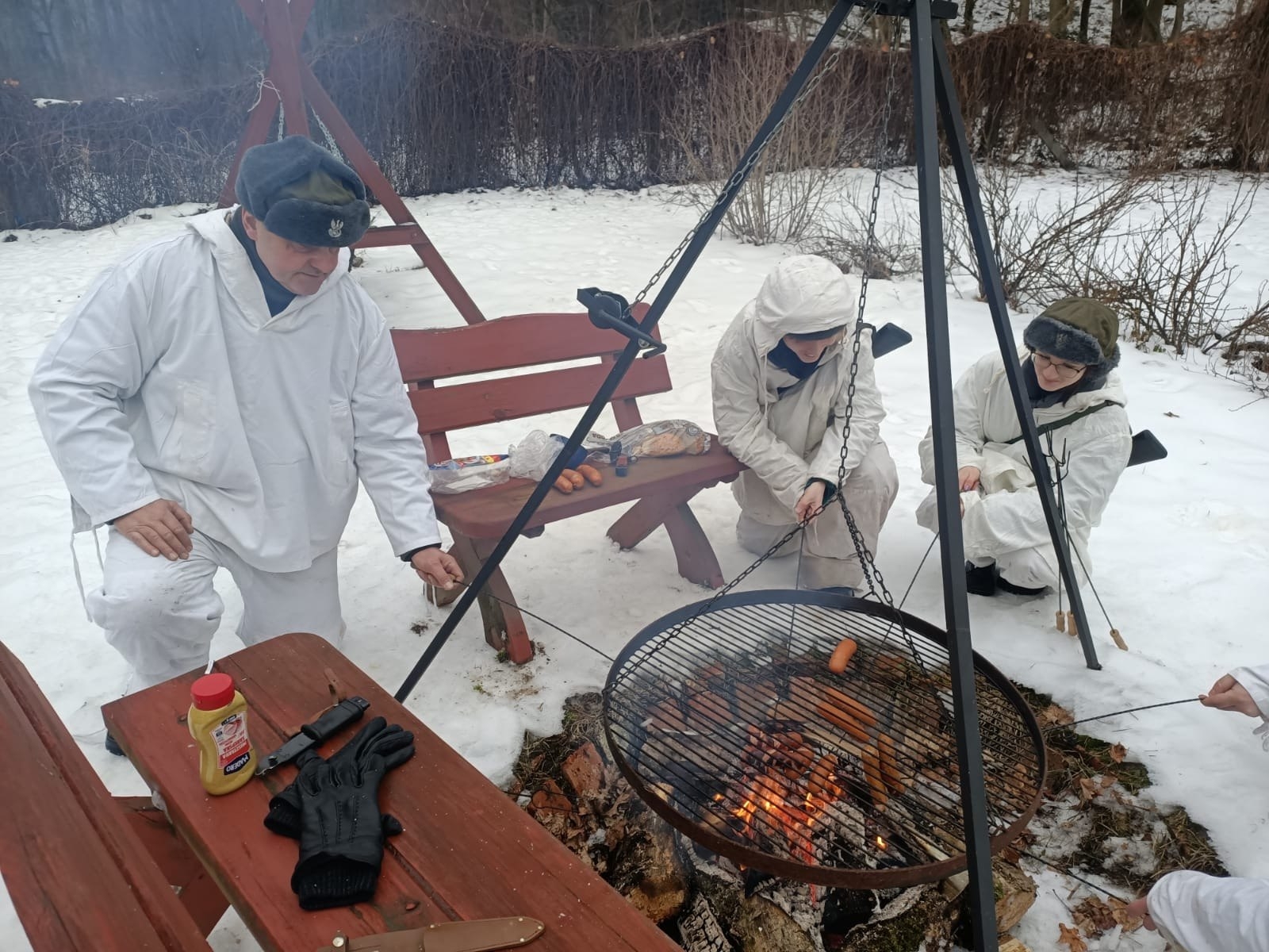 Zima nam nie straszna. Mimo niesprzyjających warunków, postanowiliśmy w czasie ferii zimowych 7 lutego 2026 roku przeprowadzić zajęcia wojskowe w terenie. Wcieliliśmy się w grupę dywersyjno-rozpoznawczą działającą na terenie opanowanym przez wroga. Celem było zniszczenie infrastruktury kolejowej. Postanowione zadanie zostało wykonane, a na zakończenie zorganizowaliśmy wspólne ognisko z kiełbaskami. Wszystko odbyło we współpracy z wieloletniem przyjacielem MHW z Leśnictwa Olek – podleśniczym Andrzejem Pstrągiem.